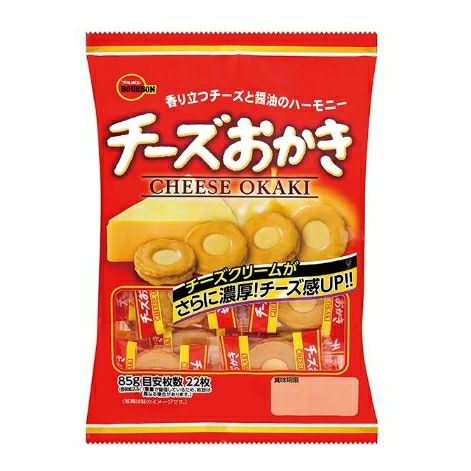 内容量:85g(個装紙込み)×8袋 賞味期限:製造日より約7ヶ月 保存方法:直射日光をさけ、30℃以下の湿気の少ないところで保存して下さい。 原材料:もち米(国産、タイ産)、植物油脂、もち米粉(タイ産)、ホエイパウダー(乳成分を含む)、でん粉、しょうゆ(小麦・大豆を含む)、うるち米(国産)、チーズ粉末、脱脂粉乳、乳糖、乳加工品、砂糖、チーズ加工品、デキストリン、発酵調味料、みりん、かつおエキス調味料(小麦を含む)、酵母エキス粉末、唐辛子粉末/加工デンプン、乳化剤(大豆由来)、ソルビトール、調味料(アミノ酸等)、香料(乳由来)、着色料(カロテノイド、カラメル)、甘味料(アセスルファムK、スクラロース) 商品説明:チーズクリームをさらに濃厚な味わいに仕上げました。濃厚でなめらかなチーズクリームと、香ばしく焼き上げたおかきのハーモニーをお楽しみください。 ブルボン チーズおかき ●受注発注商品となります。